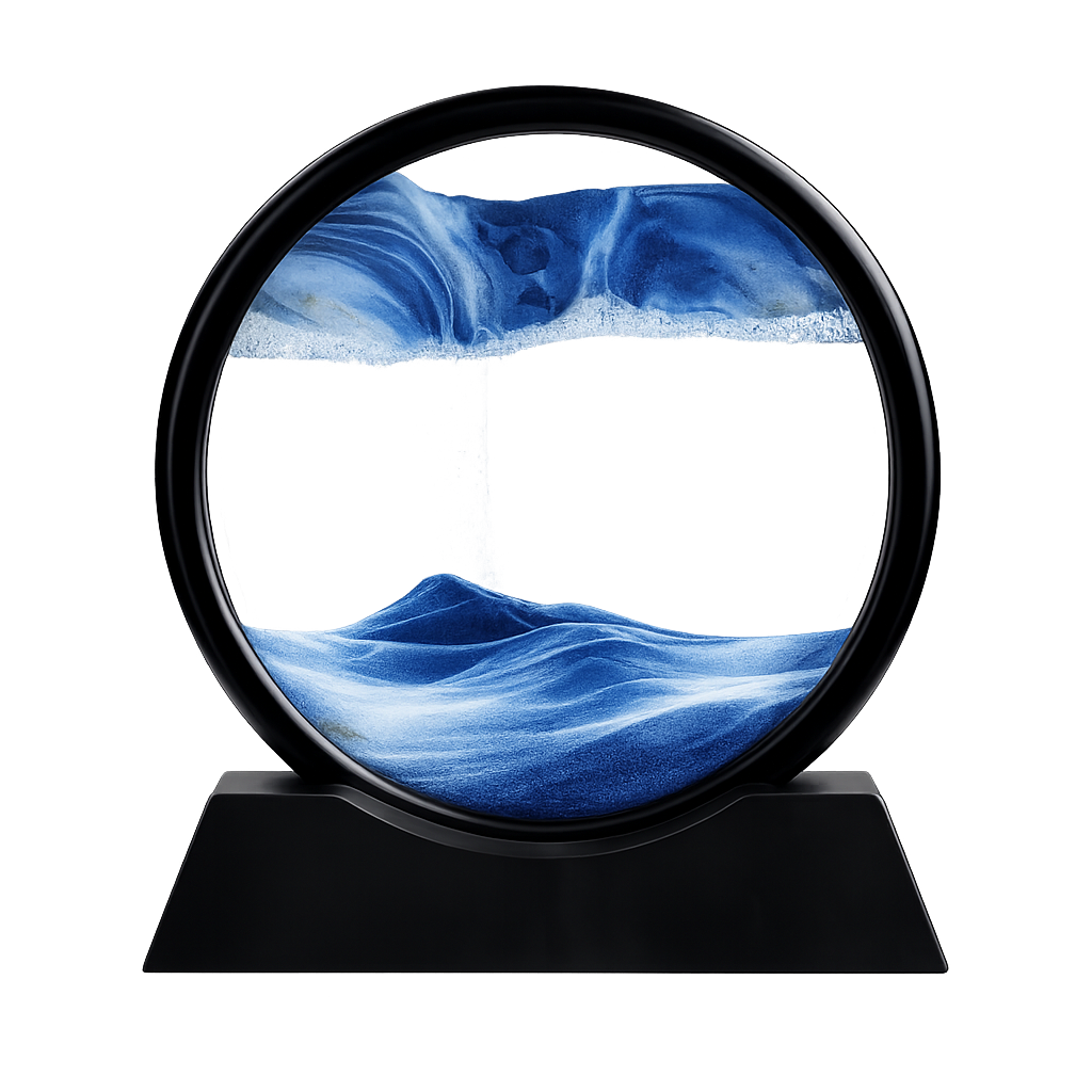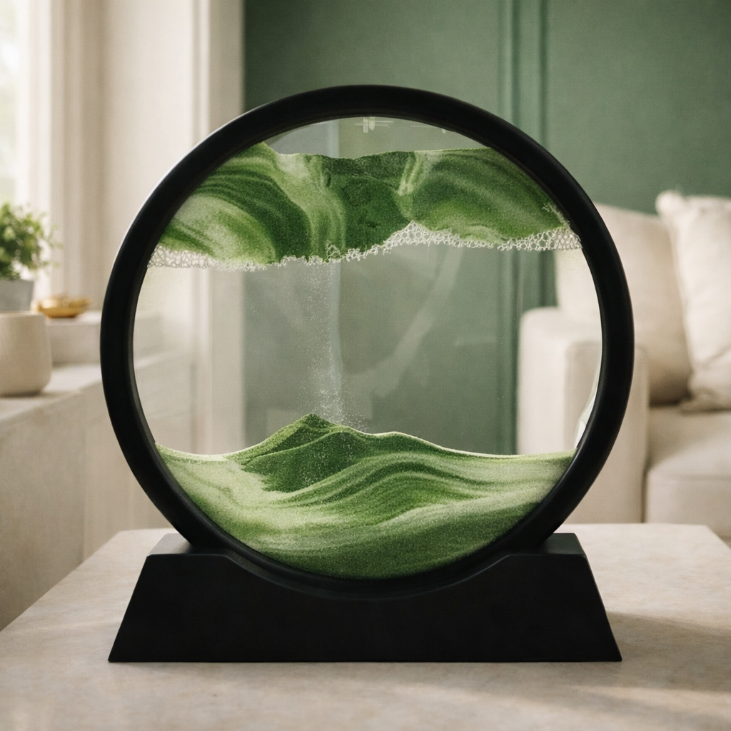 An artistic frame filled with layered sand. Simply flip or tilt it to watch the sand flow into endless new patterns.